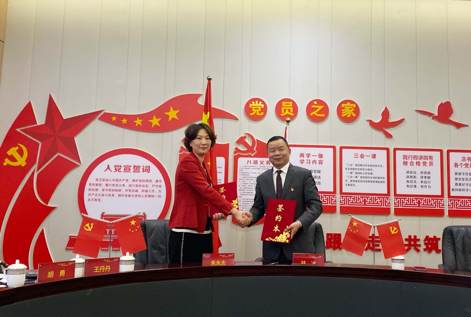jinnianhui今年会党委副书记朱永志表示,公司党委曾在多次跨企业平台交流活动中开展党建共建,针对资源整合、跨企业合作及平台搭建等方面具有丰富经验。希望双方加强党组织联系,发挥各自优势,将党建做强,共同进步提高,形成党建合力。